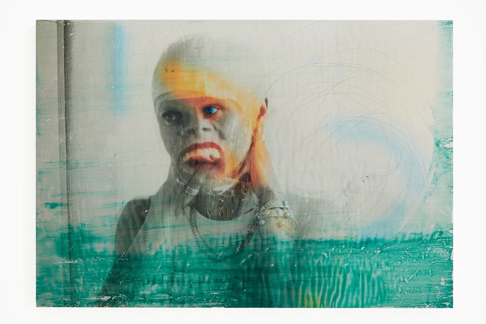 Bloom of Flesh is a series of manipulated portraits of individuals wearing bald caps. The pieces consist of layers of photographs shot within a few minutes, merged, and edited both digitally and manually through a layering of photo transfers onto aluminium sheets. The pieces depict the human body as a site of horror and uncontrollability by amalgamating the physical and mental experience of inhabiting a body and the possible discrepancy between the two. Composed as a series of portraits shown in the style of an interview or formal conversation, the frontality and focus on the face suggest a conversation between the displayed body and the invisible interviewer or interlocutor. A situation similar to the frontal, verbal, and formal exchange between a patient and a health practitioner. The bald caps here enforce a form of de-individualization that hints at the clash between the standardized and objective approach to the diseased body and the highly subjective experience of illness from within.